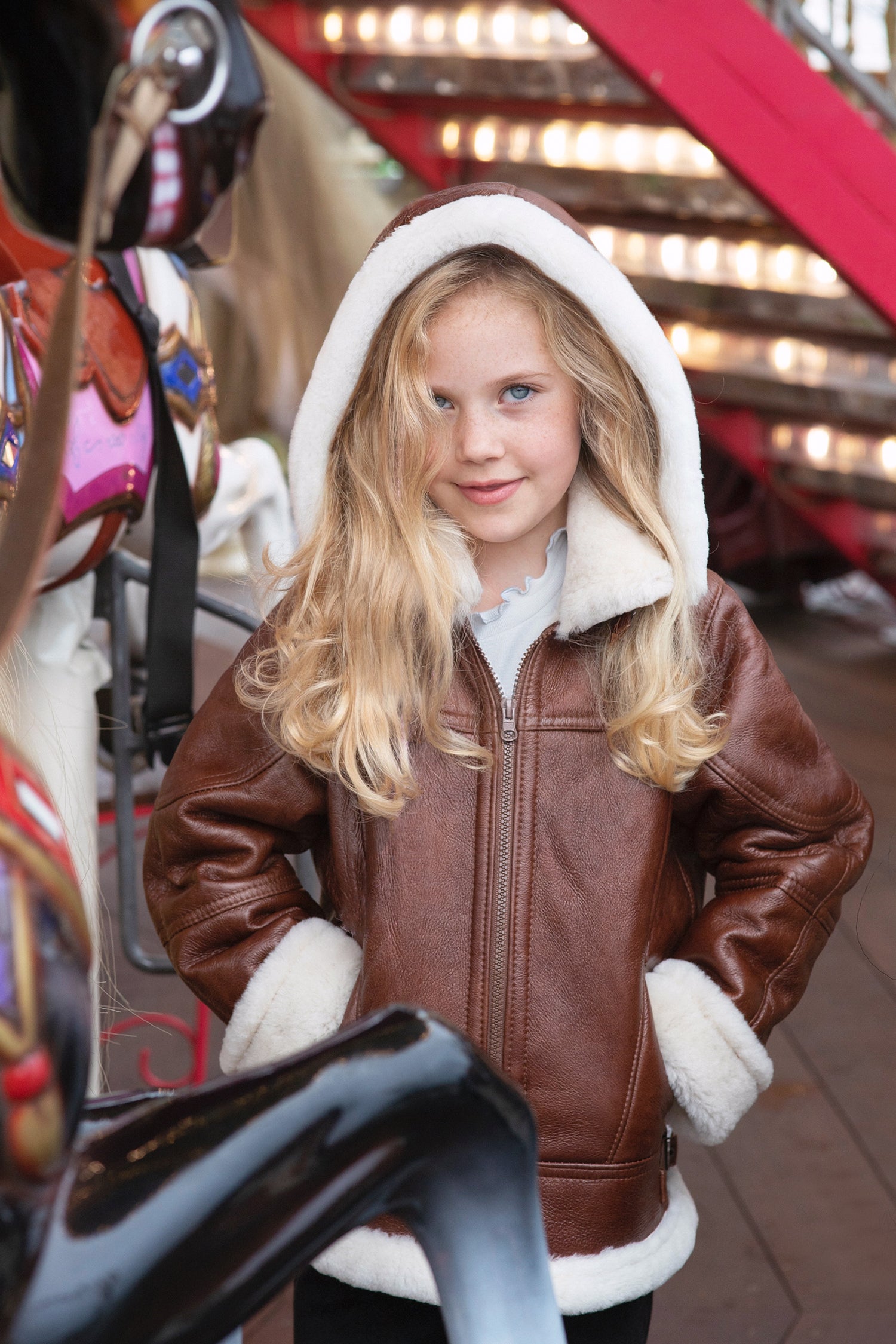 Children’s Brown Aviator Sheepskin Jacket with Hood unisex
